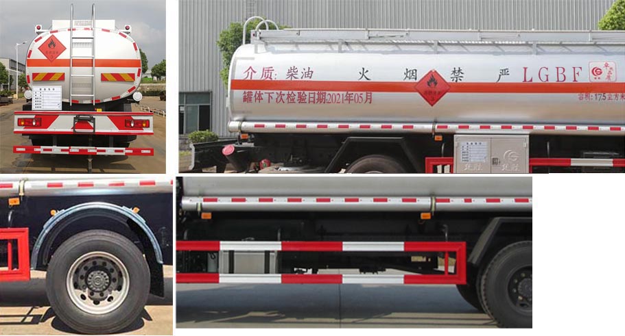 | 配置 | 1、該車適用于危險(xiǎn)品運(yùn)輸,運(yùn)送危險(xiǎn)貨物車輛類型為:FL型,類項(xiàng)號(hào):3。罐體有效容積:12.7立方米,運(yùn)輸介質(zhì):柴油、煤油、汽油,密度:830、800、700千克/立方米,罐體外形尺寸(長(zhǎng)×寬×高)(mm):5700×2000×1400。罐體上部選裝上走道;選裝后部尾燈架樣式;選裝弧形擋泥板;選裝左側(cè)無(wú)工具箱。2、側(cè),后防護(hù)材料均為Q235,螺栓連接;后防護(hù)截面尺寸120×60mm,下邊緣離地高500mm。3、僅采用軸距(mm):4700。后軸采用空氣懸架。隨底盤選裝駕駛室前面罩,選裝側(cè)窗玻璃;駕駛室頂部中間三個(gè)裝飾燈為選裝件;前霧燈為選裝件;駕駛室前臉擾流罩為選裝件。僅選用排氣管前置、限速裝置(限速80km/h)、前輪盤式制動(dòng)及子午線輪胎的底盤;安裝帶有衛(wèi)星定位功能的行駛記錄儀;ABS型號(hào)/生產(chǎn)廠家:3631010-C2000/東科克諾爾商用車制動(dòng)系統(tǒng)(十堰)有限公司。發(fā)動(dòng)機(jī)B6.2NS6B210油耗值為26.5 L/100Km。 該車后軸為采用空氣懸架. | ||
