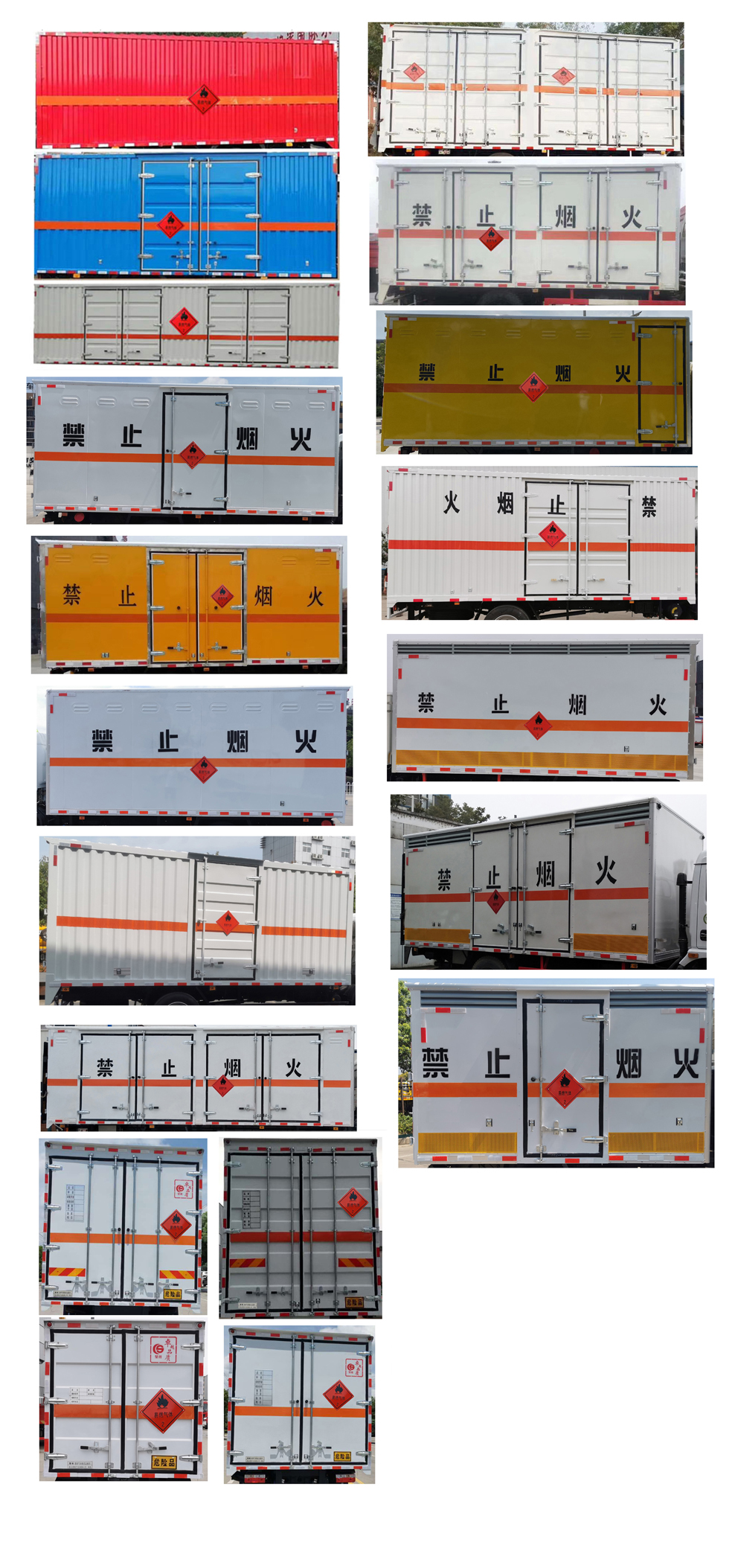| 配置 | 1、該車適用于運(yùn)輸危險(xiǎn)品。廂體頂部封閉,不可開啟。類項(xiàng)號(hào):2.1,2.2。2、側(cè),后防護(hù)材料均為Q235,連接方式:螺栓連接;后防護(hù)截面尺寸φ110mm,下邊緣離地高380mm。選裝后部無尾板,選裝無尾板時(shí)后防護(hù)材料為Q235,焊接連接,截面尺寸(mm)100×50,下邊緣離地高380mm。3、廂體側(cè)面選裝開門型式及位置,選裝不帶側(cè)開門,選裝瓦楞板結(jié)構(gòu);廂體側(cè)面板選裝開百葉窗。隨底盤選裝排半駕駛室;僅選用排氣管前置、限速裝置(限速80km/h)、前輪盤式制動(dòng)及子午線輪胎的底盤;安裝帶有衛(wèi)星定位功能的行駛記錄儀;ABS型號(hào)/生產(chǎn)廠家:ABS-E/威伯科汽車**系統(tǒng)(**)有限公司,CM4XL-4S/4M/廣州瑞立科密汽車電子股份有限公司。采用的發(fā)動(dòng)機(jī)與油耗值(L/100Km)對(duì)應(yīng)關(guān)系為: F3.8NSB6156/17.09,CY4SK261/18.07。液壓升降尾板收起狀態(tài)水平長度為300mm,尾板質(zhì)量為450kg。該車型可選裝ETC車載裝置;轉(zhuǎn)向輪安裝爆胎應(yīng)急防護(hù)裝置。 | ||