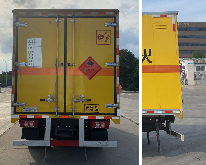 1、該車適用于運輸危險品。廂體頂部封閉,不可開啟。類項號:2.1,2.2。2、側(cè),后防護(hù)材料均為Q235,螺栓連接;后防護(hù)截面尺寸φ100mm,下邊緣離地高450mm。選裝后部無尾板,選裝無尾板時,后防護(hù)材料為Q235,焊接,截面尺寸100×50mm,下邊緣離地高450mm。3、廂體側(cè)面選裝開門型式及位置,選裝不帶側(cè)開門,選裝瓦楞板結(jié)構(gòu);廂體側(cè)面板選裝開百葉窗。安裝帶有衛(wèi)星定位功能的行駛記錄。轉(zhuǎn)向輪安裝輪胎防爆應(yīng)急防護(hù)裝置。僅選用排氣管前置、限速裝置(限速80km/h)、前輪盤式制動及子午線輪胎的底盤..ABS型號/廠家為:CM4XL-4S/4M /廣州瑞立科密汽車電子股份有限公司,ABS型號/廠家:VIE ABS-Ⅱ/浙江萬安科技股份有限公司。發(fā)動機(jī)/油耗值(L/100Km)對應(yīng)關(guān)系為:WP2.3NQ130E61/10.83。該車型可選裝ETC車載裝置。液壓升降尾板收起狀態(tài)水平長度為280mm,尾板質(zhì)量為350kg。 |