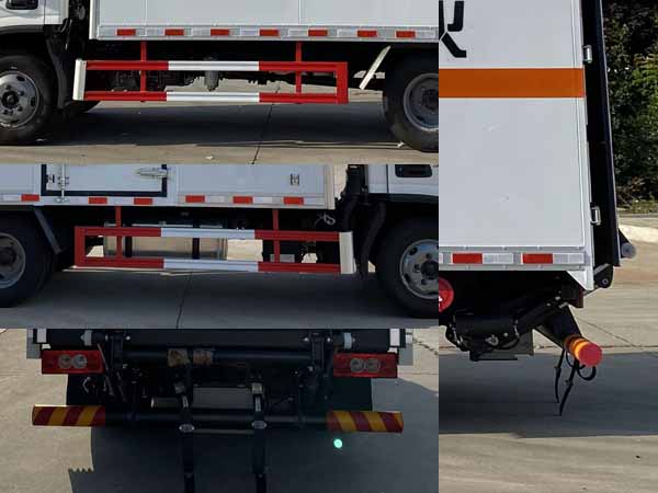 | 配置 | ABS型號:ABS-E,ABS-VI·E;ABS生產(chǎn)企業(yè):威伯科汽車**系統(tǒng)(**)有限公司,廣州瑞立科密汽車電子股份有限公司;安裝有限速裝置;限速裝置限速(km/h):80;安裝有具有衛(wèi)星定位功能的行駛記錄儀;選裝描述:選裝后部無尾板,該車型可選裝ETC車載裝置.運輸具有**包裝的不可燃氣體,安裝2.2類危險品標識;發(fā)動機/油耗值(L/100km)對應關系為:F2.8NS6B131/10.85,Q28-130E60/11.02;所用材料材質(zhì)、連接方式以及后部防護裝置的主要尺寸參數(shù)(斷面尺寸和離地高度):側(cè)、后防護材料均為Q235,螺栓連接;后防護截面尺寸100×100mm,下邊緣離地高450mm.選裝后部無尾板,后防護材料為Q235,焊接,截面尺寸100×50mm,下邊緣離地高450mm;尾板、上下坡道(或類似裝置)收起狀態(tài)的水平長度(mm):液壓升降尾板收起狀態(tài)水平長度為280mm,尾板質(zhì)量為350kg;車廂頂部封閉且不可開啟;運輸**容器(瓶)包裝的貨物;危險貨物類項號:2.1,2.2;其他說明:該車為危險貨物運輸車.僅選用排氣管前置,限速裝置,前輪盤式制動及子午線輪胎的底盤.轉(zhuǎn)向輪安裝 輪胎爆胎應急防護裝置;廂體側(cè)面選裝開門型式及位置,選裝不帶側(cè)開門,選裝瓦楞板結(jié)構;廂體側(cè)面板選裝開百葉窗。 | ||