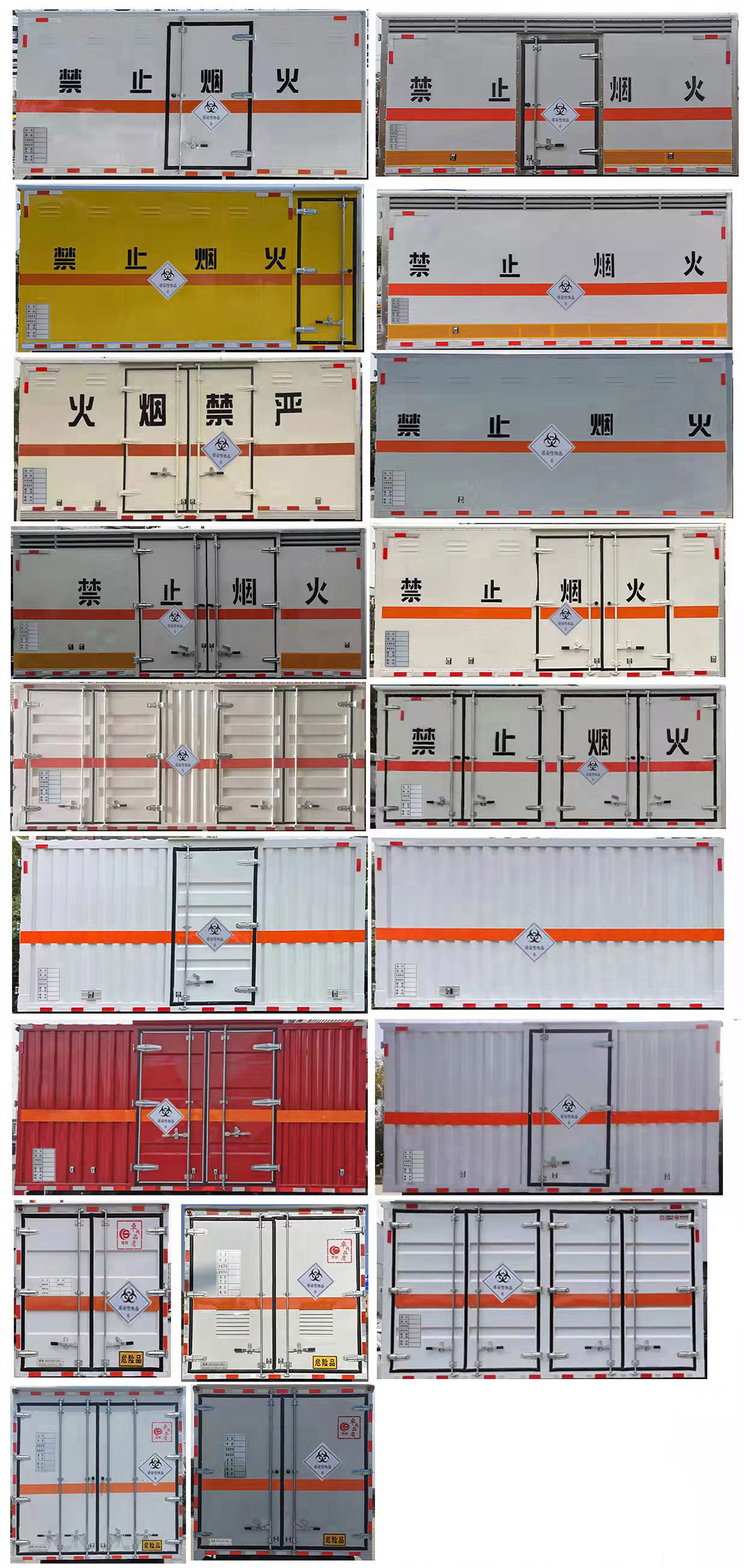 | 其它: | 1、該車(chē)適用于運(yùn)輸危險(xiǎn)品。廂體頂部封閉不可開(kāi)啟。運(yùn)輸具有獨(dú)立容器(瓶)包裝的物品,運(yùn)送危險(xiǎn)物品類(lèi)項(xiàng)號(hào):6.1,6.2。2、側(cè),后防護(hù)材料均為Q235,螺栓連接;后防護(hù)截面尺寸100×50mm,下邊緣離地高410mm。廂體側(cè)面選裝開(kāi)門(mén)型式及位置,選裝不帶側(cè)開(kāi)門(mén),選裝瓦楞板結(jié)構(gòu);選裝百葉窗。3、隨底盤(pán)選裝排半駕駛室。僅選用排氣管前置、限速裝置(限速80km/h)、前輪盤(pán)式制動(dòng)及子午線(xiàn)輪胎的底盤(pán);轉(zhuǎn)向輪裝備輪胎爆胎應(yīng)急防護(hù)裝置。安裝帶衛(wèi)星定位功能的行駛記錄儀。ABS系統(tǒng)型號(hào):ABS-VI.E;生產(chǎn)企業(yè):廣州瑞立科密汽車(chē)電子股份有限公司;ABS系統(tǒng)型號(hào):ABS-E;生產(chǎn)企業(yè):威伯科汽車(chē)控制系統(tǒng)(中國(guó))有限公司;ABS系統(tǒng)型號(hào):ABS8.8 ECU 24V,生產(chǎn)企業(yè):東科克諾爾商用車(chē)制動(dòng)系統(tǒng)(十堰)有限公司;發(fā)動(dòng)機(jī)/油耗值(L/100km)對(duì)應(yīng)關(guān)系為:CY4SK261/16.09,D30TCIF1/16.19,F2.8NS6B156/15.39,F3.8NS6B156/14.90。可選裝ETC車(chē)載裝置。 | ||