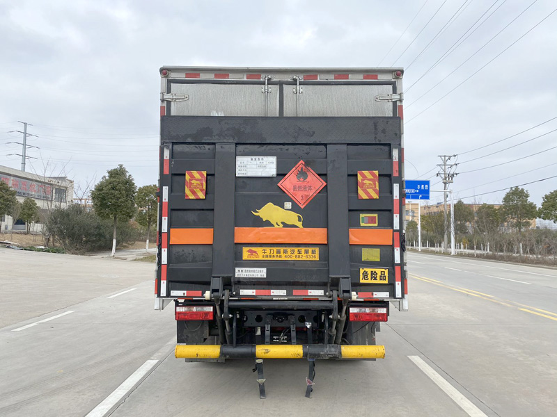 | 其它: | 1、該車(chē)適用于運(yùn)輸危險(xiǎn)品,運(yùn)輸具有獨(dú)立容器(瓶)包裝的物品,運(yùn)送危險(xiǎn)物品類(lèi)項(xiàng)號(hào):3。廂體頂部封閉,不可開(kāi)啟。2、側(cè)、后防護(hù)材料均為Q235,螺栓連接,后防護(hù)截面尺寸(mm)φ125,下邊緣離地高460mm。選裝后部無(wú)尾板,選裝后部無(wú)尾板時(shí)后防護(hù)材料為Q235,焊接,截面尺寸(mm)100×50,下邊緣離地高460mm。3、僅選用排氣管前置、限速裝置(限速80km/h)、前輪盤(pán)式制動(dòng)及子午線輪胎的底盤(pán),轉(zhuǎn)向輪安裝輪胎爆胎應(yīng)急防護(hù)裝置。安裝帶有衛(wèi)星定位功能的行駛記錄儀。ABS系統(tǒng)控制器型號(hào)/生產(chǎn)廠家: ABS/ASR-24V-4S/4M/襄陽(yáng)東風(fēng)隆誠(chéng)機(jī)械有限責(zé)任公司。發(fā)動(dòng)機(jī)/油耗值(L/100km)對(duì)應(yīng)關(guān)系為: ZD30D16-6N/17.2,YCY24140-60/16.5, NV30-C6G/17.3, CY4SK261/17.4, YCY30165-60/17.5, CY4BK361/17.9。選裝ETC。隨底盤(pán)選裝駕駛室。廂體側(cè)面選裝開(kāi)門(mén)型式及位置,選裝不帶側(cè)開(kāi)門(mén),選裝廂體樣式,廂體側(cè)面板選裝開(kāi)百葉窗。僅采用軸距3308mm。尾板收起狀態(tài)水平長(zhǎng)度為290mm,尾板質(zhì)量為420kg。 | ||