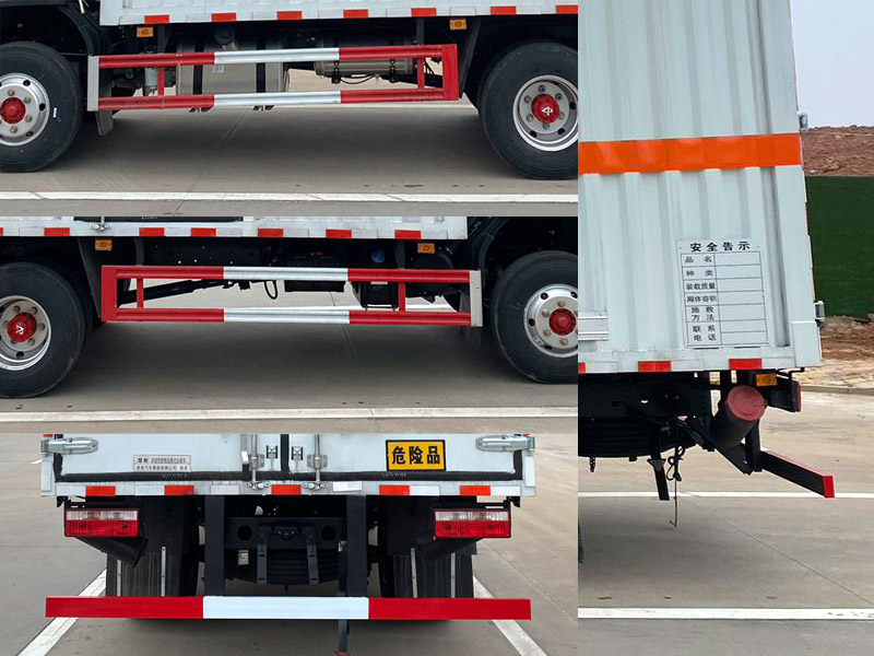| 其它: | 1、該車為危險品運輸車,運輸具有獨立容器(瓶)包裝的物品,運送危險物品類項號:9。廂體頂部封閉,不可開啟。2、側、后防護材料均為Q235,側防護螺栓連接,后防護焊接,截面尺寸(mm)100×50,下邊緣離地高450mm。3、僅選用排氣管前置、限速裝置(限速80km/h)、前輪盤式制動及子午線輪胎的底盤,轉向輪安裝輪胎爆胎應急防護裝置。安裝帶有衛(wèi)星定位功能的行駛記錄儀。ABS系統(tǒng)控制器型號/生產廠家: ABS/ASR-24V-4S/4M/襄陽東風隆誠機械有限責任公司。發(fā)動機/油耗值(L/100km)對應關系為: ZD30D16-6N/17.2,YCY24140-60/16.5, NV30-C6G/17.3, CY4SK261/17.4, YCY30165-60/17.5, CY4BK361/17.9。選裝ETC。隨底盤選裝駕駛室。廂體側面選裝開門型式及位置,選裝不帶側開門,選裝廂體樣式,廂體側面板選裝開百葉窗。僅采用軸距3308mm。 |