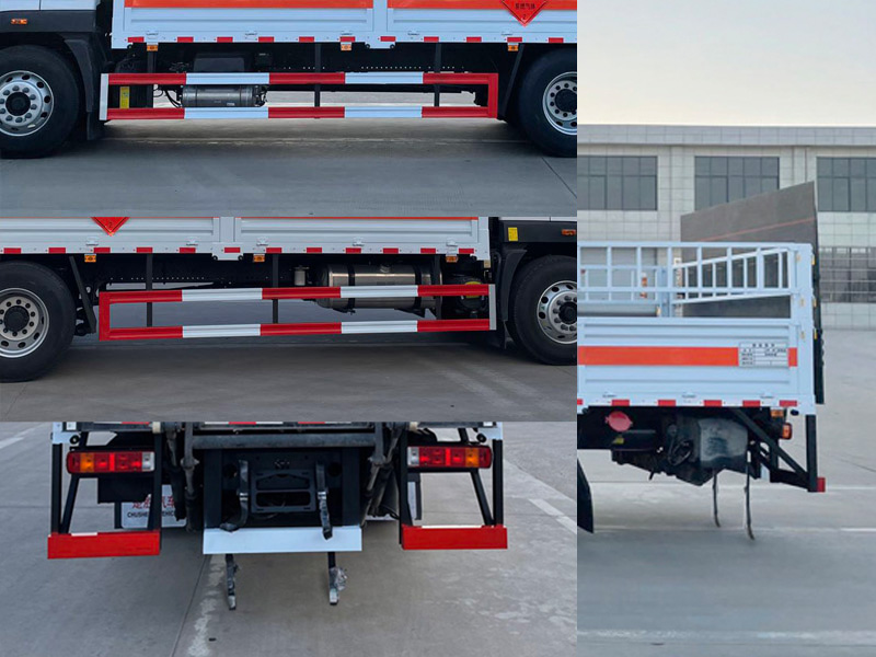 | 其它: | 1、該車適用于運輸危險品。運輸具有獨立容器(瓶)包裝的物品,類項號:2.1,2.2。2、側,后防護材料均為Q235,側防護螺栓連接;后防護焊接,截面尺寸120×50mm,下邊緣離地高490mm。選裝后部無尾板時,后防護材料為Q235,焊接,截面尺寸120×50mm,下邊緣離地高490mm。選裝欄板樣式。3、僅采用軸距(mm):4700,5150。隨底盤選裝駕駛室,選裝電瓶、尿素罐、儲氣筒、后處理位置。僅選用排氣管前置、限速裝置(限速80km/h)、前輪盤式制動及子午線輪胎的底盤;安裝帶有衛(wèi)星定位功能的行駛記錄儀。該車轉向輪安裝輪胎爆胎應急防護裝置,后軸采用空氣懸架。選裝ETC。EBS系統型號/生產廠家:EBS 5/克諾爾制動系統(大連)有限公司,CM-EBS/廣州瑞立科密汽車電子股份有限公司。采用的發(fā)動機與油耗值(L/100Km)對應關系為:F4.5NS6B220/24.4,B6.2NS6B210/26。尾板收起狀態(tài)水平長度為290mm,尾板質量550kg。 | ||