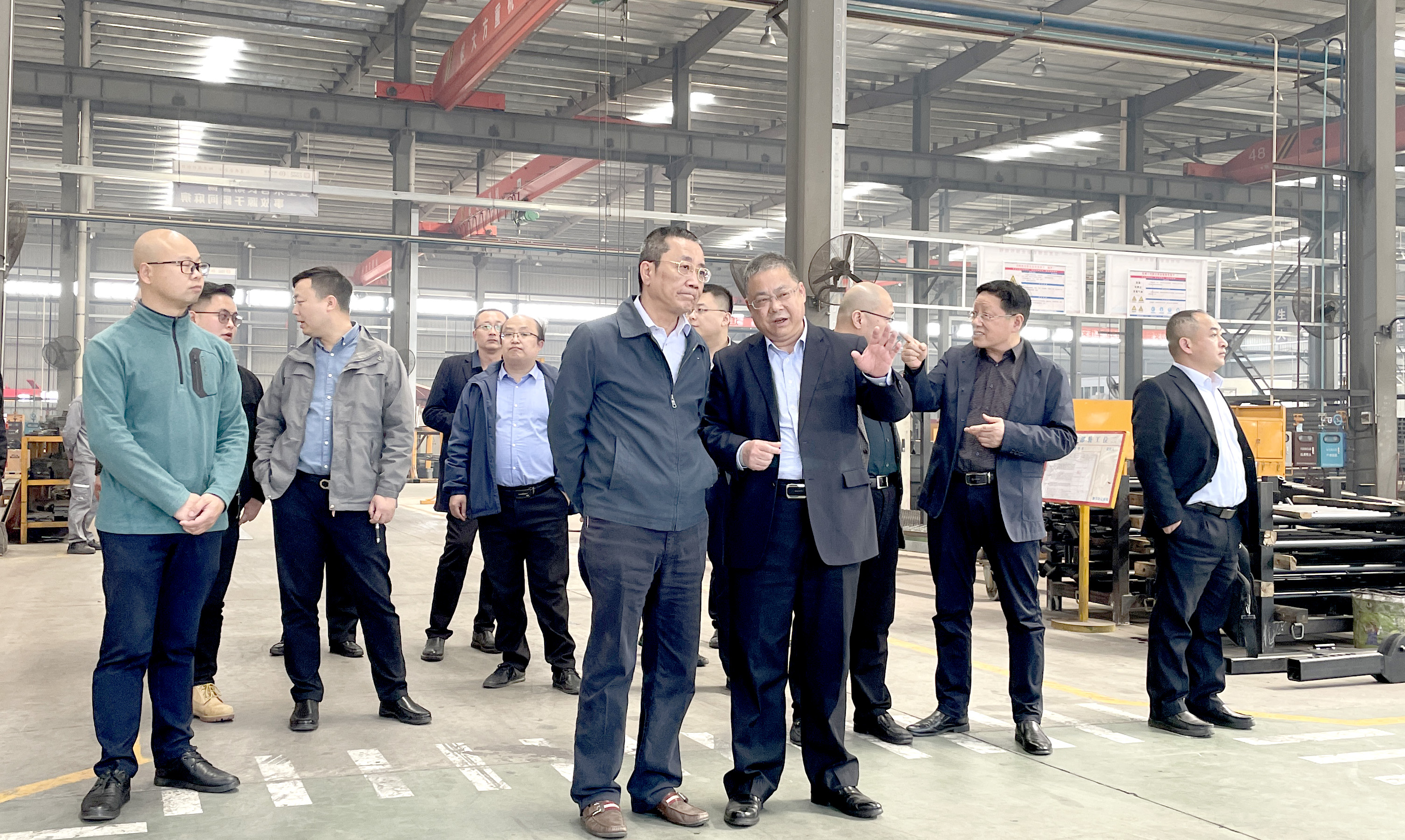 總裁王小康帶領(lǐng)蔡總等一行領(lǐng)導(dǎo)參觀了公司罐式車、自卸車、備料中心、消防車、環(huán)衛(wèi)車、清障車生產(chǎn)車間,隨后在會議室對公司發(fā)展歷程、“6+X”產(chǎn)品戰(zhàn)略、十四五發(fā)展規(guī)劃作了詳細介紹。中國重汽蔡總對楚勝公司的發(fā)展方向和市場定位表示高度贊賞,并向參會人員重點介紹了重汽汕德卡、豪沃、豪曼、成都王牌產(chǎn)品及市場情況,雙方就業(yè)務(wù)合作進行了交流溝通。