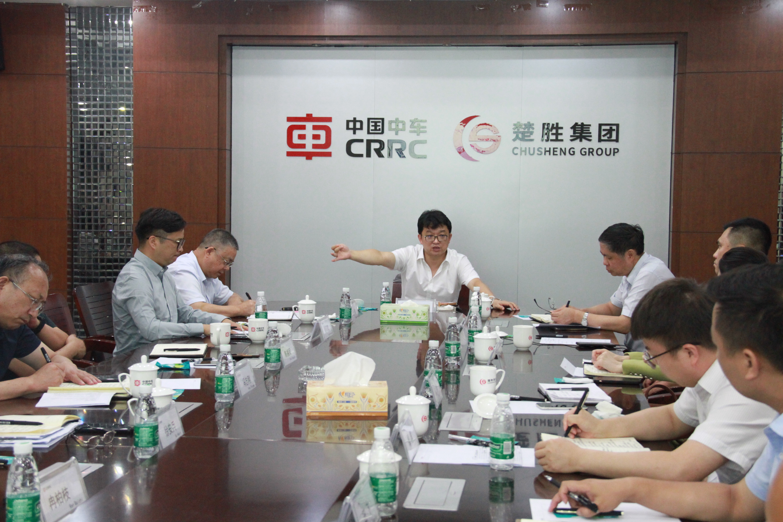 8月2日,中車城市交通黨委書記顧一峰等領(lǐng)導(dǎo)一行蒞臨楚勝參觀指導(dǎo)。公司總裁王小康帶領(lǐng)全體班子成員接待。