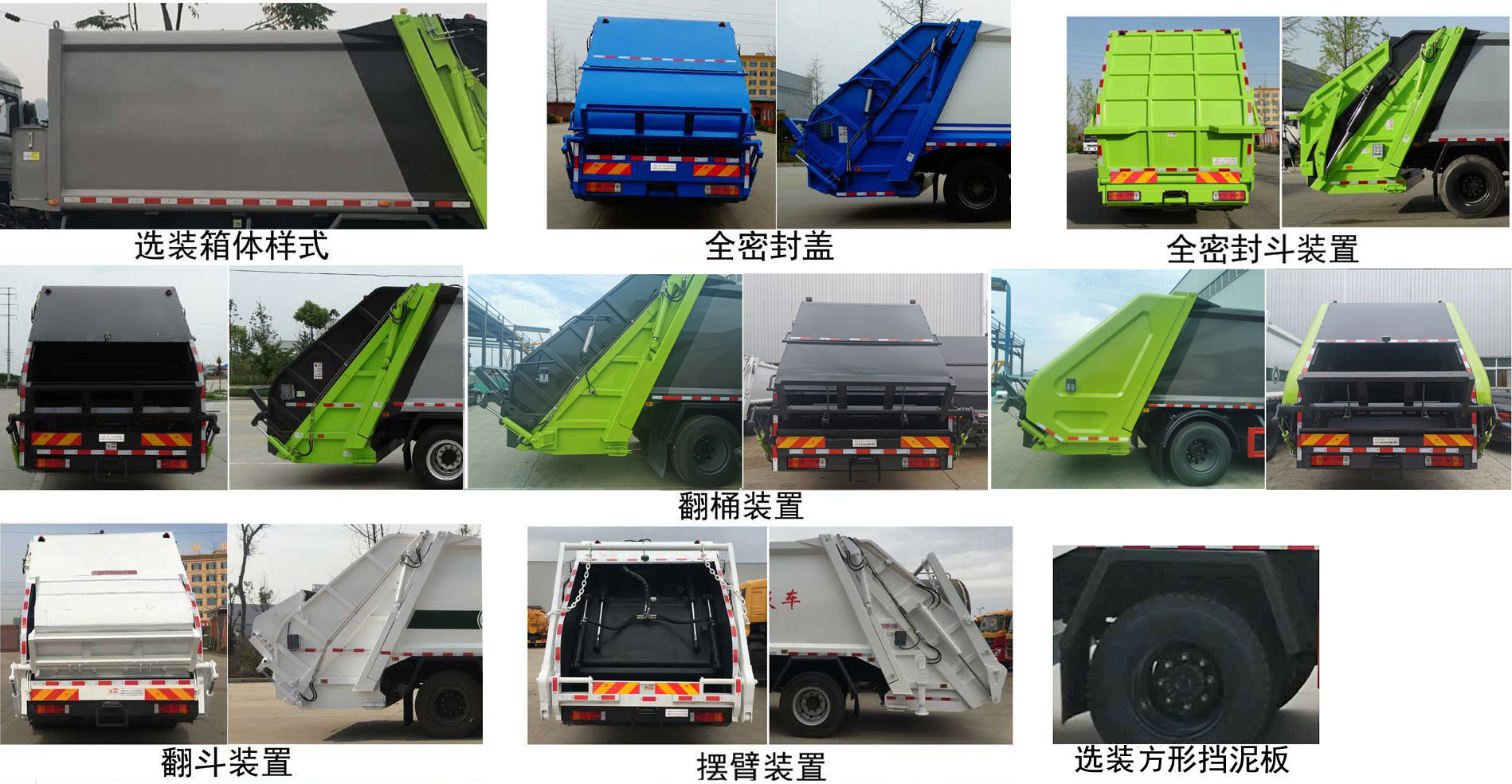 | 配置 | 1、該車主要專用裝置由箱體、填料器總成、壓縮系統(tǒng)等組成,用于垃圾的收集與清運。該車可選裝方形或弧形箱體,選裝全密封蓋裝置。選裝后部工作裝置。選裝工作裝置時外形長/軸距/后伸對應關系為(mm):①無上料裝置:8620/4500/-;②全密封斗裝置和擺臂裝置:8820/4500/200;③翻桶裝置和翻斗裝置:9020/4500/400。僅采用4500mm軸距。2、側防護材料Q235,螺栓連接;后防護由專用裝置代替,下邊緣離地高:500mm。3、隨底盤選裝半高頂駕駛室,選裝改前圍的駕駛室,選裝不同結構的翼子板。安裝帶有衛(wèi)星定位功能的行駛記錄儀。ABS生產(chǎn)廠家/型號:浙江萬安科技股份有限公司/VIE ABS-II。發(fā)動機與油耗值對應關系為(L/100Km):WP4.6NQ220E61/26.51,CA4DLD-19E6/26.5,CA6DLD-22E6/26.5。 | ||