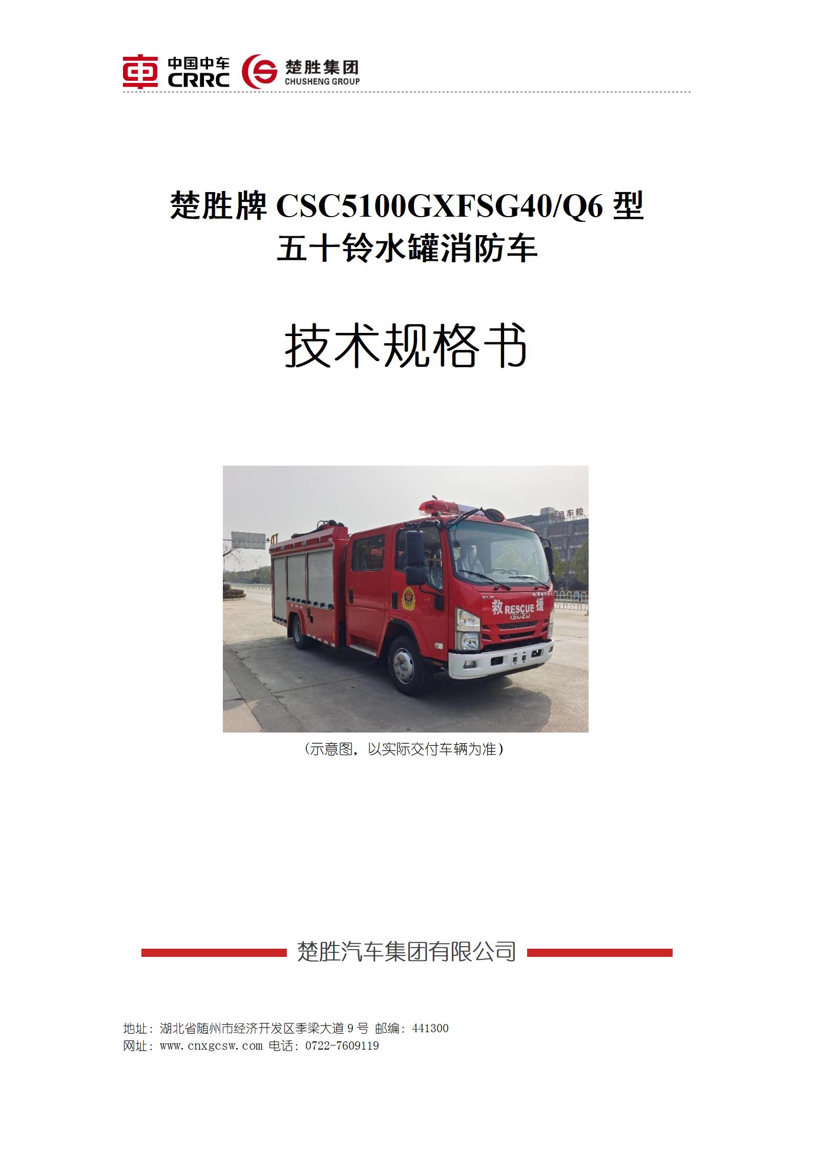 楚勝牌 CSC5100GXFSG40/06 型五十鈴水罐消防車